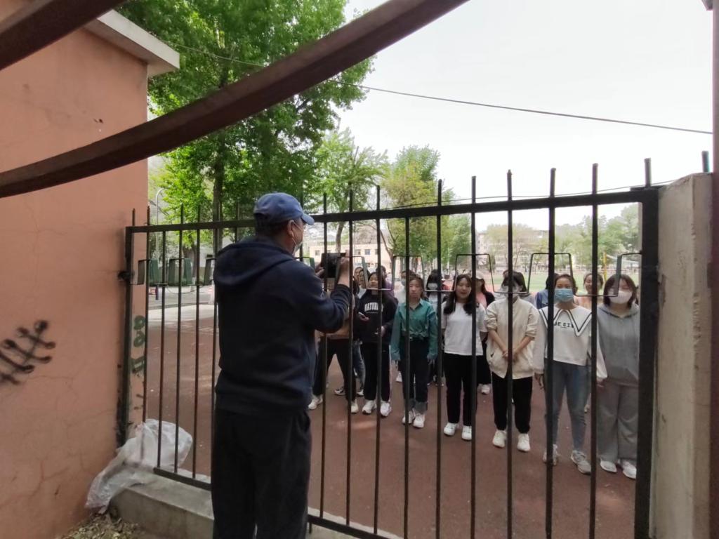 石丁老师隔着栅栏守望学生