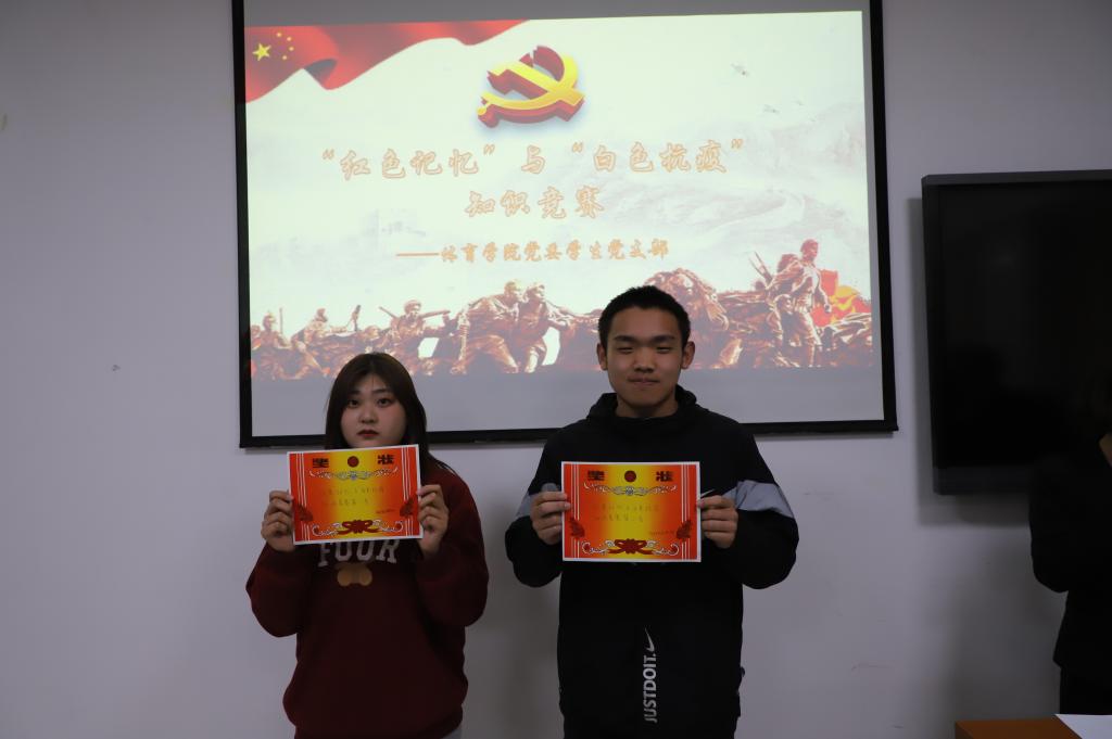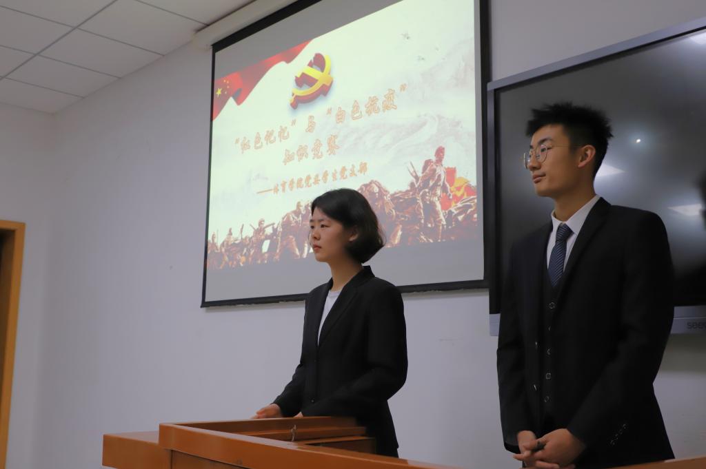 2020年11月3日下午4:30,我院学生党支部在召开预备党员接收大会后开展“红色记忆·白色抗疫”知识竞赛。全体学生支部党员参加,入党积极分子路畅、白喆主持。