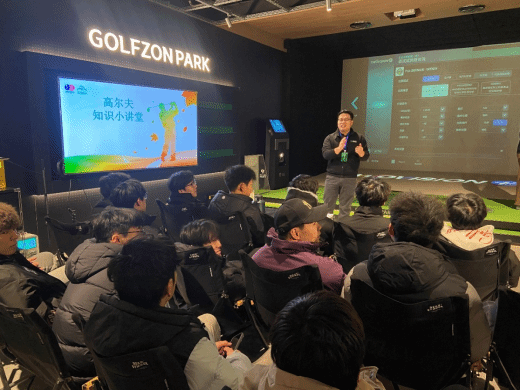 活动伊始,俱乐部资深教练为学院师生详细讲解了高尔夫运动的发展现状。从传统室外球场到现代室内数智化高尔夫的转型,学生们直观感受到了科技为体育产业带来的变革。随后,教练重点强调了高尔夫礼仪——这种被称为“绅士运动”的核心灵魂,包括服饰规范、球场自律及尊重对手等内容,引导学生内化体育精神。