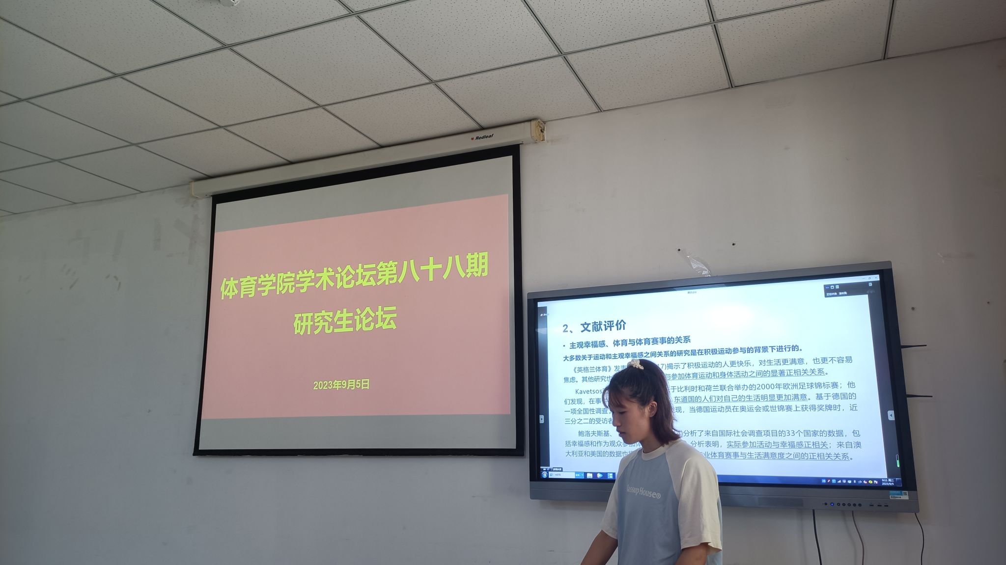 9月5日上午,ok138cn太阳集团529学术论坛第八十八期研究生论坛——研究生读文献在ok138cn太阳集团529会议室举办。本次论坛由2022级体育产业管理专业硕士研究生潘宏雯和2023级体育产业管理专业硕士研究生席壮伟两位同学进行文献精讲。2022级体育产业管理专业硕士研究生吴晓俊、王聪聪两位同学做了文献速递,2021级体育产业管理专业硕士研究生武涌静同学分享了自己的专业实习经验。全院研究生与部分教师通过线上与线下相结合的方式积极参与研讨,学院学科和研究生办公室主任王雁副教授主持论坛。