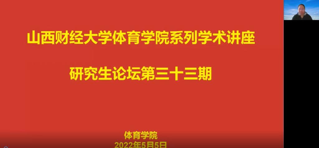 2022年5月5日下午,我院第三十三期研究生论坛通过线上腾讯会议召开。此次论坛由张新英老师主持,全体研究生和部分老师参与,2021级体育产业管理专业研究生武涌静、孙丰缘精讲文献。本次论坛内容主要从体育复古营销的概念框架和运动训练的角色定位两个主题展开。