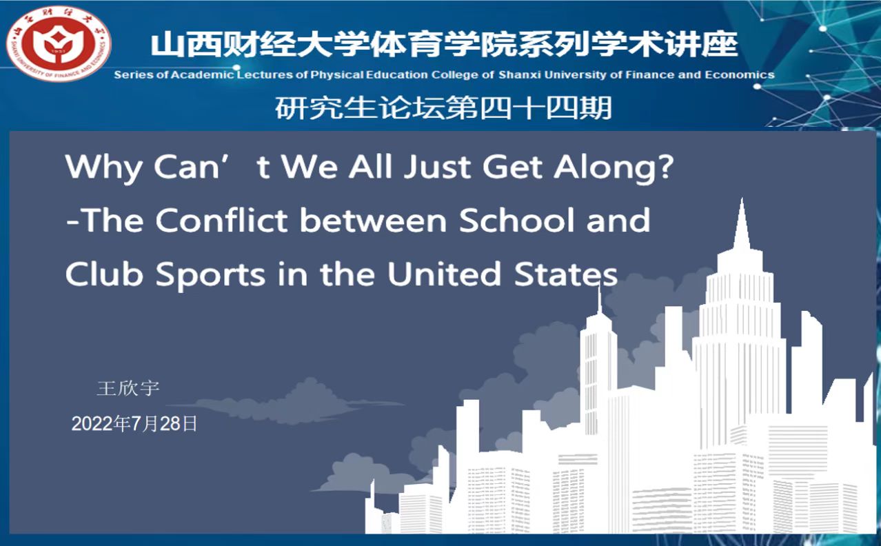 论坛第一讲由王欣宇同学分享精读文章,来自德州农工大学健康与运动学系的Gregg Bennett等学者联合发表的文章Why Can’t We All Just Get Along? The Conflict between School and Club Sports in the United States,来自QUEST期刊。文章主要研究了美国学校与俱乐部之间的冲突关系,并对这些问题提供了可能性的解决方案。