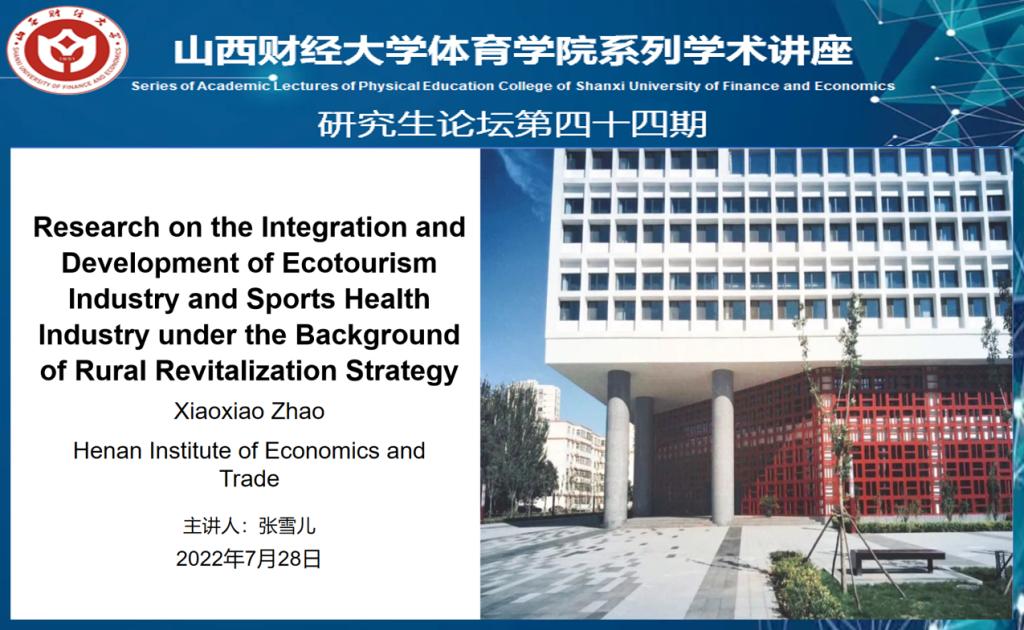论坛第二讲由张雪儿同学分享精读文章,来自河南经贸职业学院赵晓晓学者的Research on the Integration and Development of Ecotourism Industry and Sports Health Industry under the Background of Rural Revitalization Strategy,来自Journal of Healthcare Engineering。文章基于对生态旅游与体育旅游融合发展现状的认识,探讨生态旅游产业与体育健康产业的融合发展战略。