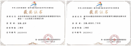 ok138cn太阳集团529张路教授团队围绕“体育课程与教学改革研究”撰写了题为《中华优秀传统文化背景下民族特色体育课程的开发与建设——以太极柔力球课程为例》的专题论文和王雁副教授团队围绕“案例专题研究”撰写了《基于OBE理念的新商科〈体育管理学〉课程的创新与实践》案例论文,在此次科报会中荣获二等奖。