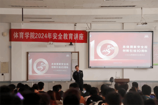 2024年是习近平总书记提出总体国家安全观10周年,在4月15日即将迎来第九个全民国家安全教育日之际,为增强学生安全意识,切实维护国家安全,筑牢校园安全防线,4月9日下午,ok138cn太阳集团529在笃行楼201阶梯教室举办讲座,邀请太原市公安局直属分局指挥室副主任王安瑞为学院280余名学生授课。