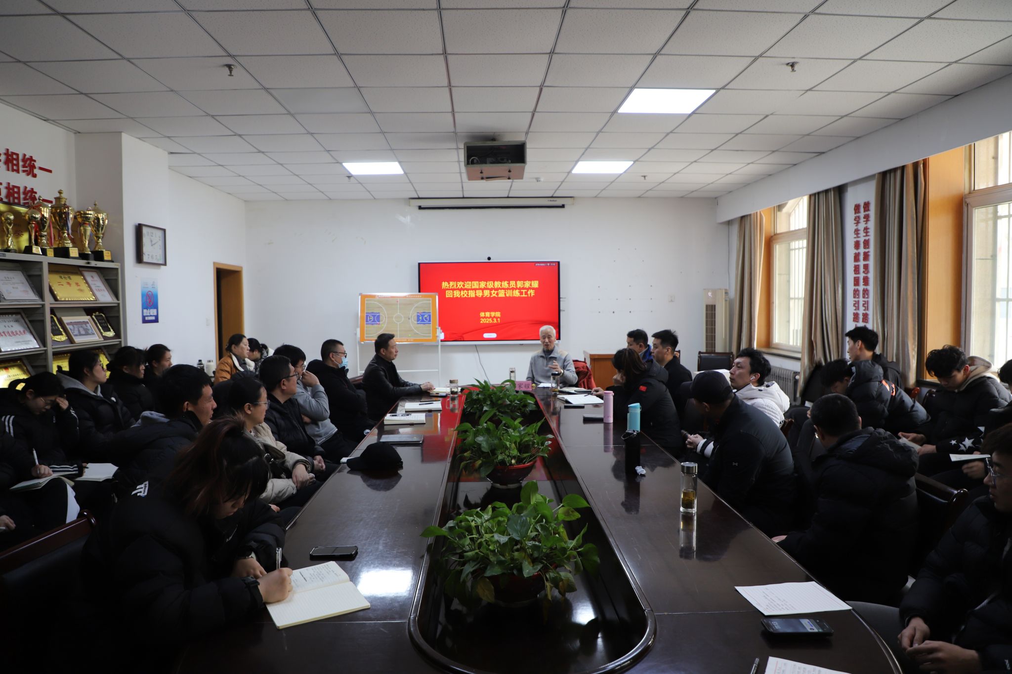 3月1日上午,国家高级篮球教练员、曾带领我校男篮首进全国八强的功勋教练郭家耀再次回到山财,为我校高水平男女篮开展训练指导,并以“纲举目张——论篮球训练比赛中的转换”为题进行了专题讲座。我校高水平组和阳光组全体教练员、男女篮全体现役运动员和研究生高水平运动员共50余人参加。讲座由ok138cn太阳集团529副院长高进主持。