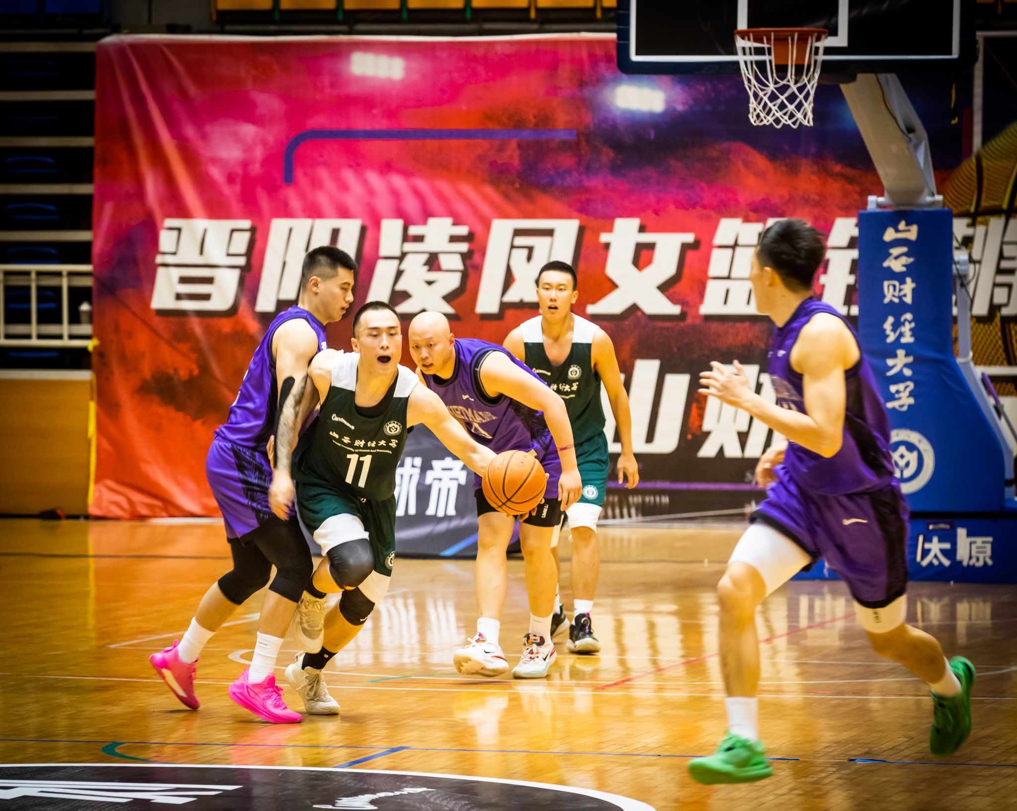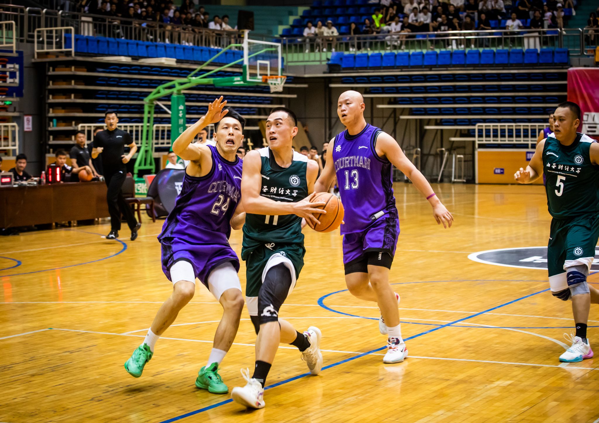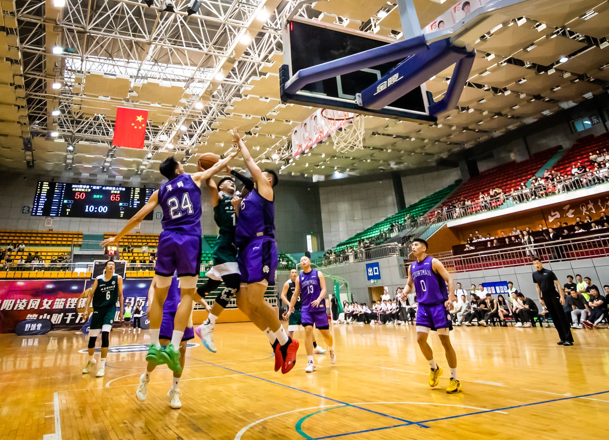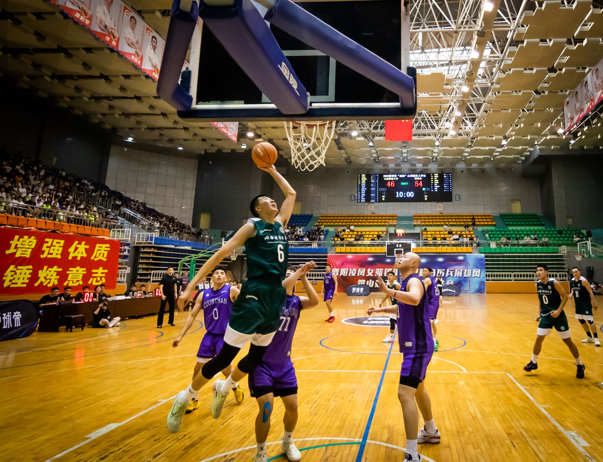 下半场开始,OK138太阳集团篮球队找回了应有的状态。伴随着比分的逐渐追平,山西财大队员们的脸上露出灿烂的笑容,队员们互相鼓励,拥抱欢呼,击掌加油。一次次果断的起跳,一个个精彩的投篮,OK138太阳集团篮球队以力挽狂澜的姿态,将比分拉到44:52。