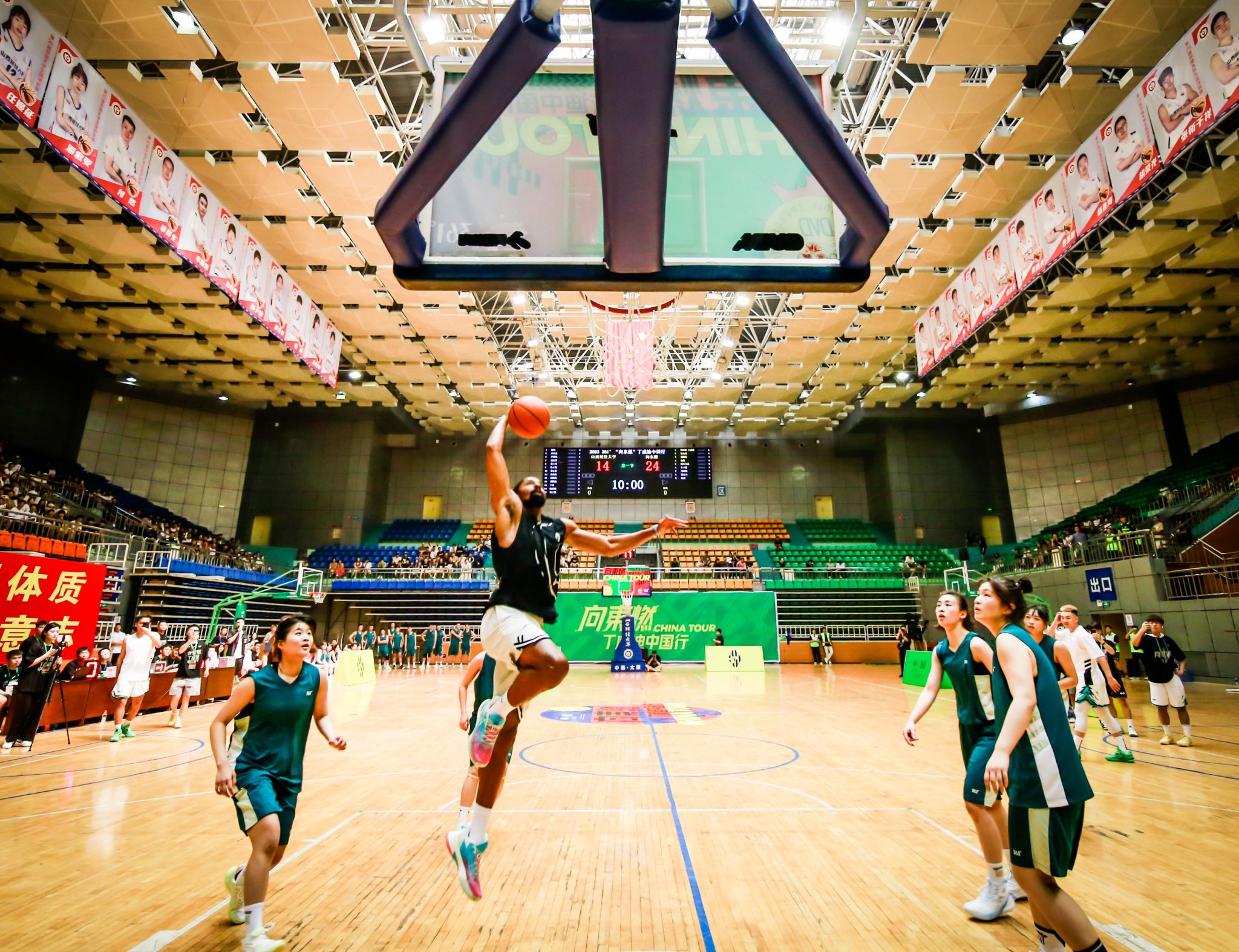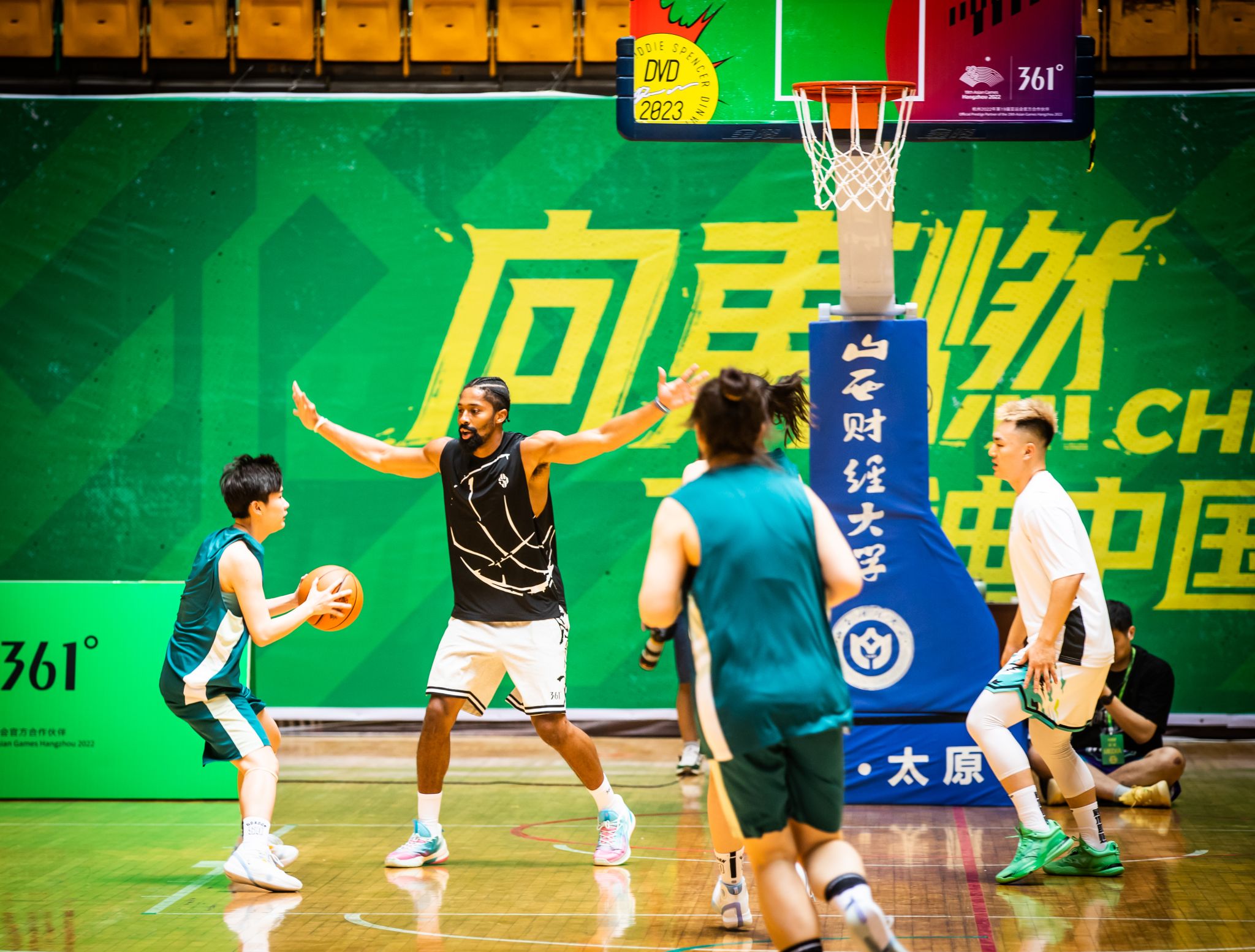 野球帝带来兴奋还未散尽,山财学子又迎来另一场篮球盛宴——NBA知名球星丁威迪团队与山财男女篮的火热赛事!