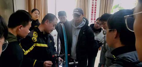 之后,宋经理为拓展同学们对自行车的了解并传授更多技能,特地从门店带来专业的维修设备和工具,现场对自行车进行调试和维修。同学们通过细致观察和认真记录,基本掌握了自行车变速器齿轮的调节和轮圈的调整等技能。