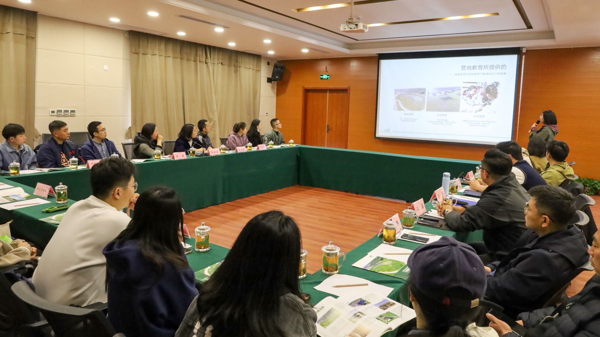在营地销售部杨经理的带领下,老师和同学们了解了企业的发展现状、企业文化、运营成果及资质荣誉,实地参观了营地工作环境及配套设施。