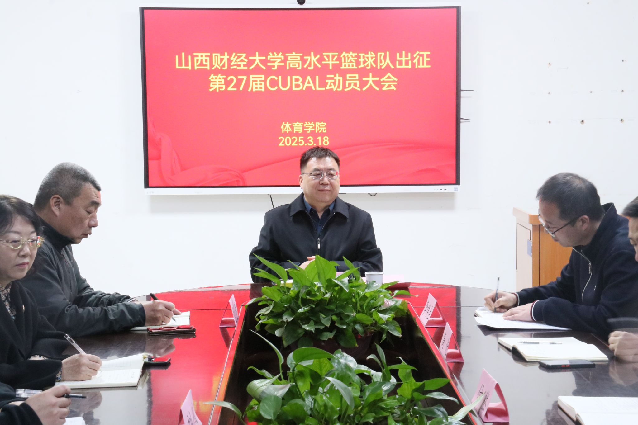 主教练谷晨旭、付然分别介绍了男女篮备战第27届CUBAL情况;全体教练员、运动员进行了自我介绍;男女篮队长韩梓豪、卢诗怡代表球队发言。张路代表学院和球队,对校领导的嘱托和全校师生的支持表示衷心感谢,他要求队员们以此次动员会为动力,坚决贯彻学校的安排部署,以昂扬的斗志、饱满的精神、扎实的作风、严谨的态度,全力以赴投身CUBAL西北赛区比赛。他表示,学院将想方设法全方位保障比赛顺利,努力在比赛中取得好成绩,展现财大体育人的风采,为学校增光添彩,以实力证明和刷新这张山西财大的“亮丽名片”。